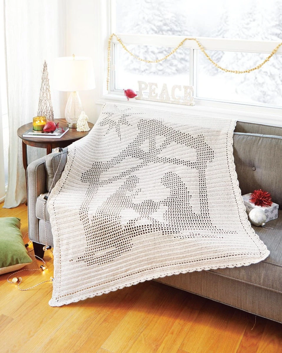 Are you looking for a beautiful crafting project that will elevate your home’s Christmas spirit? Make some time to relax with the Mary Maxim A Child Is Born Throw Kit. Crochet this elegant filet throw, and add it to the decor in your home. This kit comes with the yarn, instructions and graph style pattern, to start crocheting right away. Our unique design captures the moment of the special night we all celebrate during the joyous Christmas season.