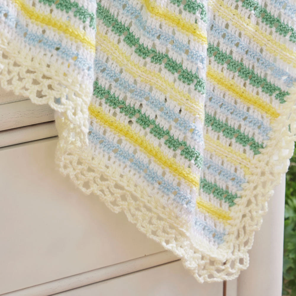 Sweet blanket is worked from side to side with surface stitches adding an extra touch. Kit includes Mary Maxim Baby Value yarn, Caron Simply Soft yarn and pattern. Requires crochet hooks G-6, H-8 and J-10. Size 36.5 x 38″. Intermediate Crochet.