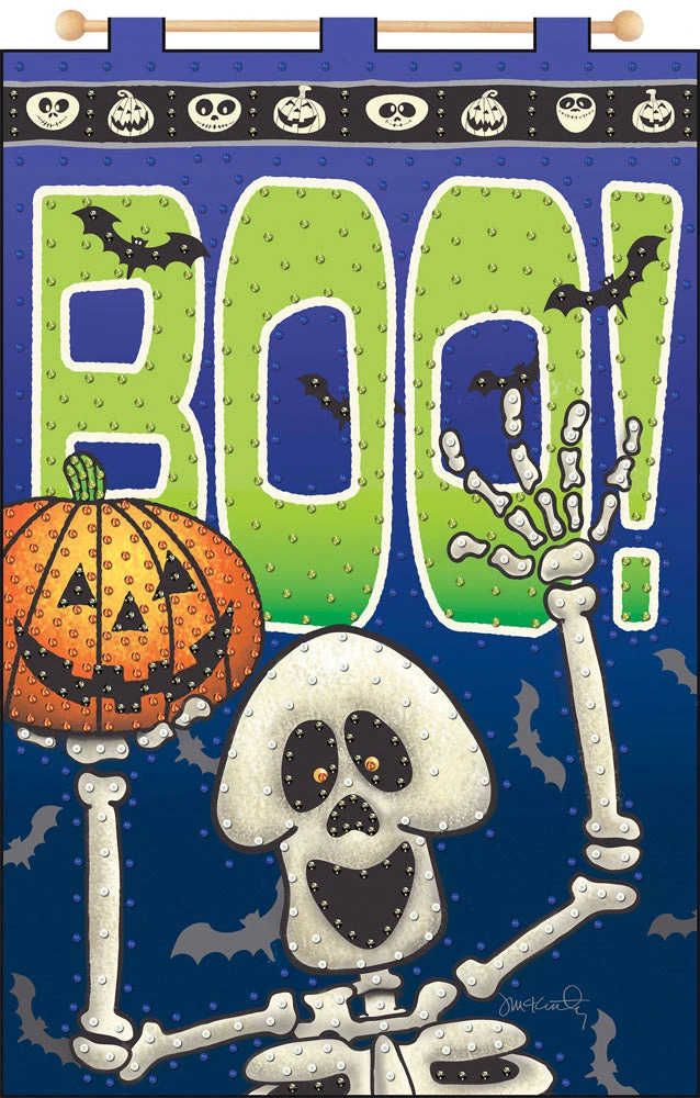 Let this character welcome your holiday guests. Kit includes pre-printed 100% polyester fabric, thread, sequins, beads, dowel, finials and instructions. Size 16 x 24″.