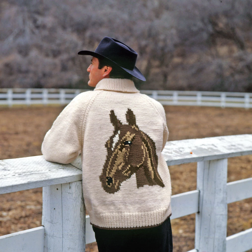 A classic zip front jacket to knit for any horse lover. Kit includes Mary Maxim Titan yarn. Requires needles sizes 7 (4.5 mm) and 10 (6 mm). Zipper not included. Intermediate knit.