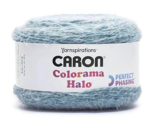 Introducing CaronĀ® Colorama Haloā¢, the perfect yarn for both beginners and experienced crafters alike! This bulky-weight acrylic striping yarn easily creates beautiful, approachable fashion pieces. With its luxuriously soft and textured feel, possibilities are endless. 71% acrylic, 18% nylon, 11% polyester. 481 yards per 8 oz. cake. Sugg. gauge: 15 sts. & 20 rows to 4″ on size 10 needles.