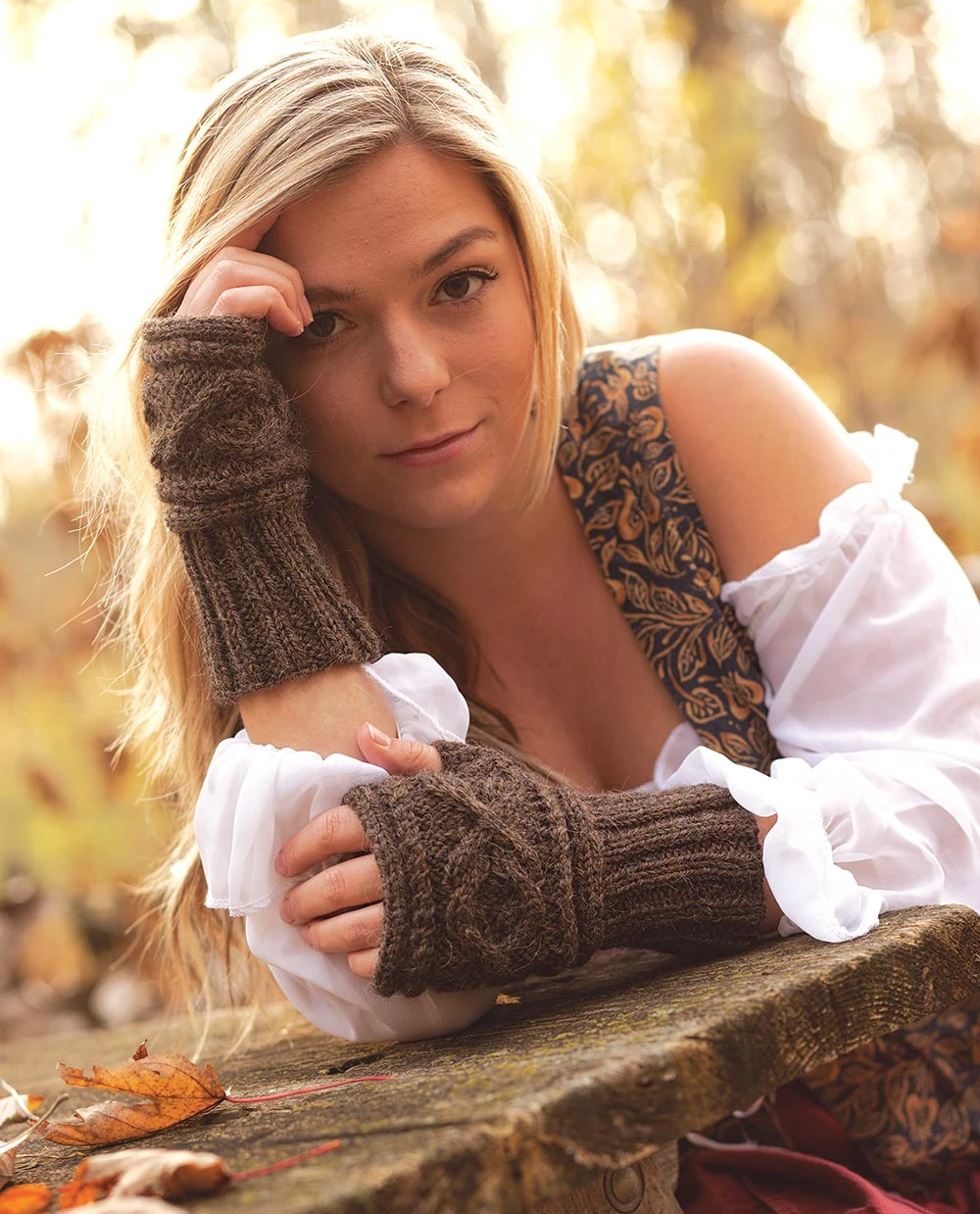 Knit these gloves using Mary Maxim Woodlands Yarn. Requires 1 ball and set of double pointed needles size 7 (4.5 mm). Pattern fits average woman.