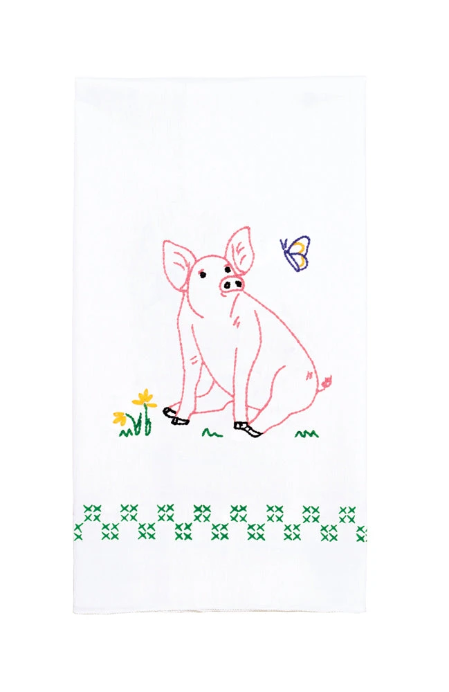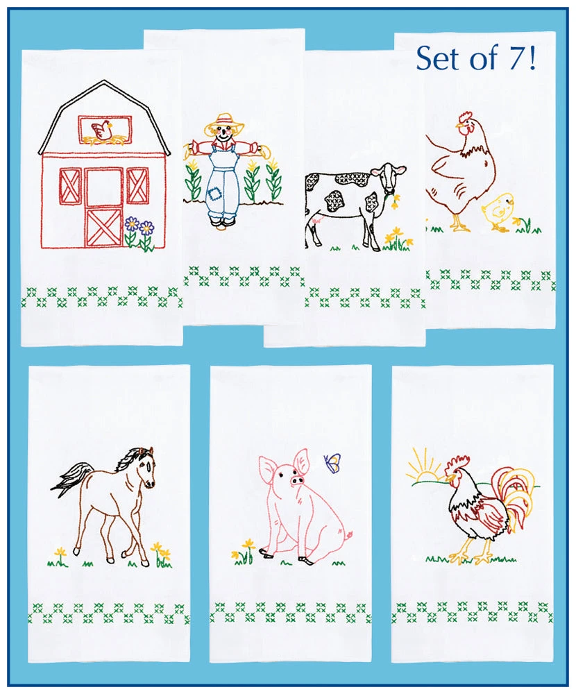 Bring the farm into your kitchen with these adorable stamped towels. Includes 7 stamped polyester/cotton towels. Size 17 x 28″. Thread kit sold separately.