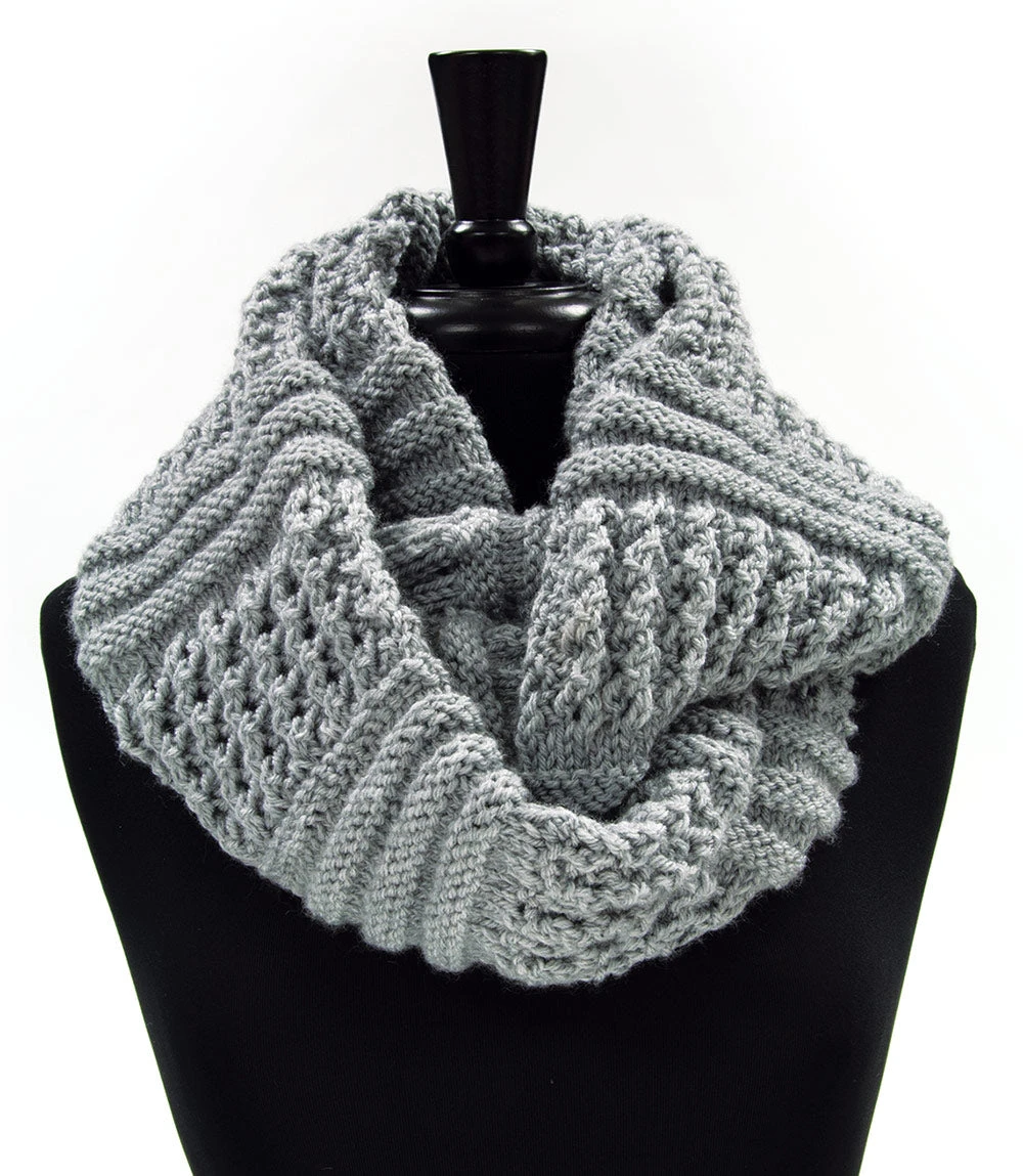 Warm up with this soft cowl. Kit to knit includes Starlette yarn. Size 10 X 57″.