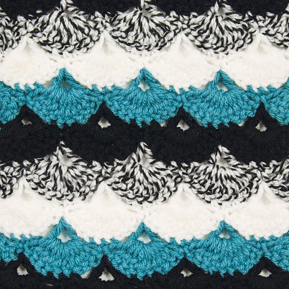 Combinations of warm or cool color tones of, cozy Starlette and Starlette Ragg colors. Finished Size 47.5 x 57” [120.5 x 144.5 cm]. Requires Crochet Hook Size H-8 (5.00 mm).