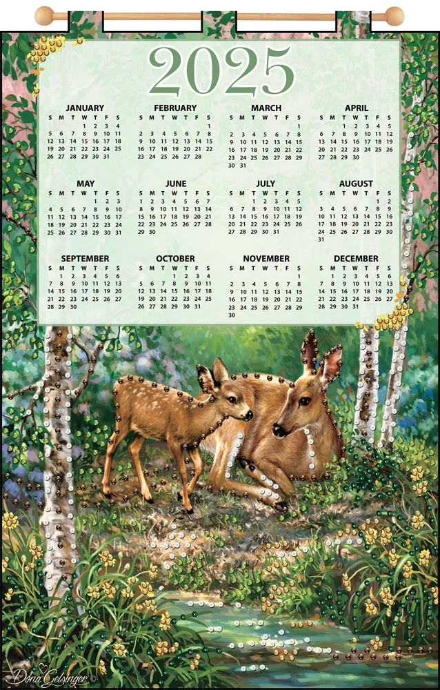 Mary Maxim exclusive calendar kits are quick & easy to stitch or glue. Includes printed felt, sequins, beads, floss, dowel with finials. Size 16 x 24″.