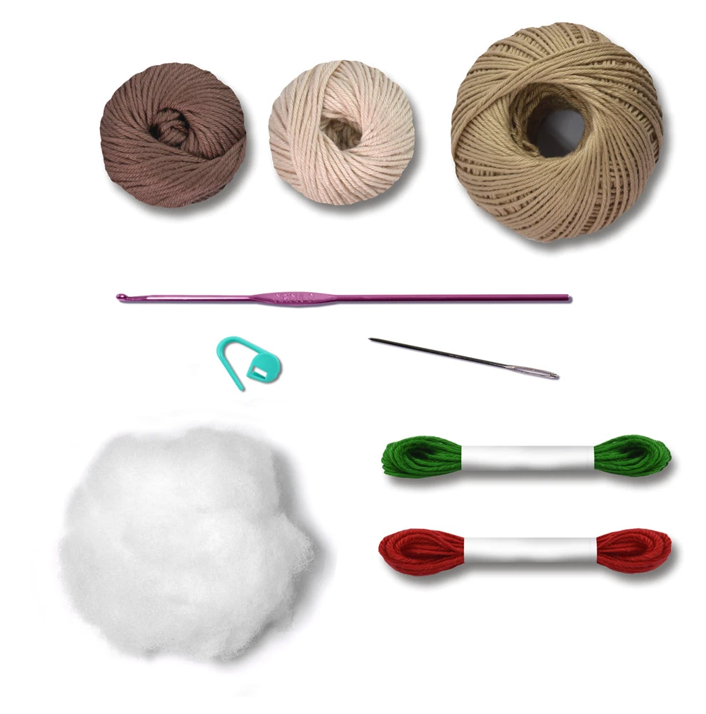 An adorable character to crochet. Kit includes 100% Amigurumi yarn, crochet hook, tapestry needle, stitch marker and polyester stuffing. Size 9″ tall.
