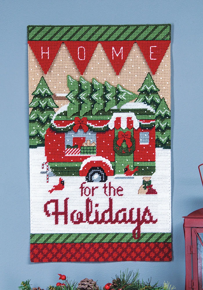 There is nothing like home for the holidays! Kit includes 7 mesh plastic canvas, acrylic yarn and pattern. Finished size: 13.5 x 22.5″.