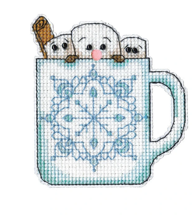 Hang these adorable ornaments on your tree or use to adorn your gifts. Kit includes 14 ct. plastic canvas, floss, needle and instructions to make set of 6 as shown. Size 3 x 3.5″.