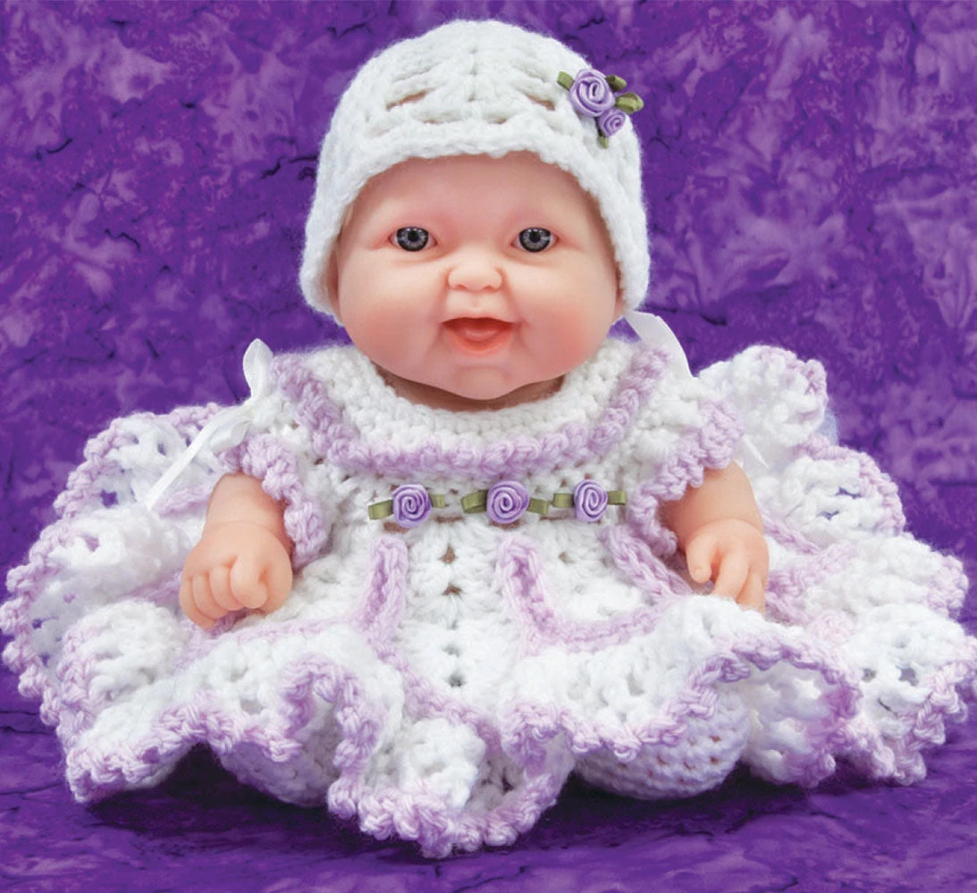 Crochet this outfit to fit a 10″ doll with our pattern.