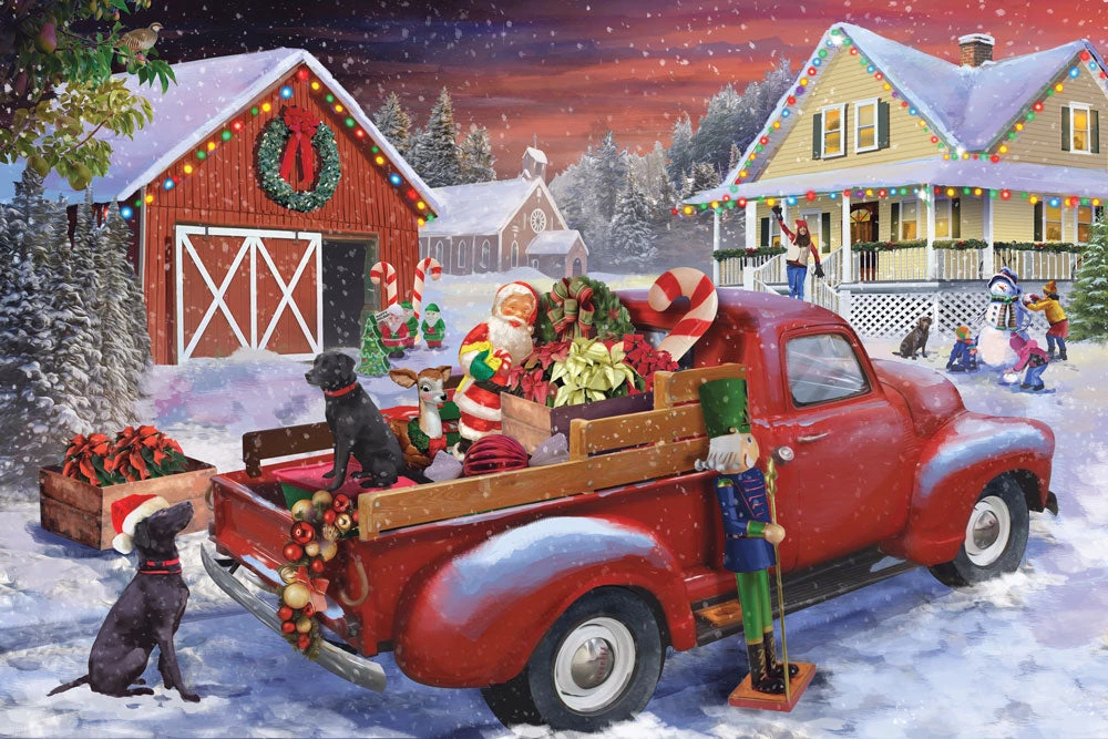 An adorable Christmas puzzle to put together. 1000 pieces. Size 26.5 x 19″.