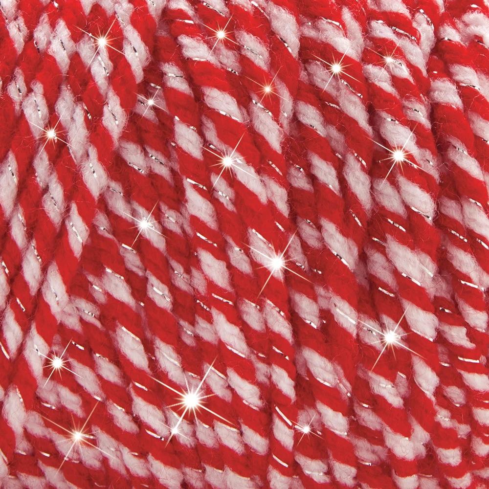 Add a touch of sparkle to your next project. 97% acrylic, 3% metallic polyester. 216 yds. per 4 oz. ball. Sugg. gauge: 17 sts. & 23 rows to 4″ on size 9 needles.