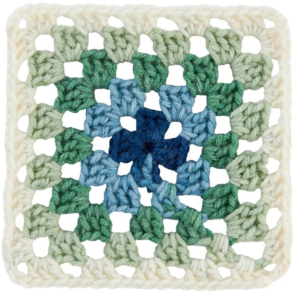 Red Heart All in One Granny Square is the innovative striping effect yarn designed to crochet 5 color granny squares in just 1 ball. No color switchinā. Just keep on stitchinā with 67% less ends to weave in to finish your next granny square project. This beginner-friendly yarn is perfect for at home or on-the-go projects with 1 ball making up to 14 granny squares. There is no need to carry around 5 different shades to crochet beautiful 5 color granny squares with Red Heart All in One Granny Square. 100% acrylic. 8.8 oz. (250 g) and 417 yards (381 meters) per ball. Crochet Gauge: 12 sc and 15 rows with a 5.5 mm crochet hook. Knitting Gauge: 17 sts and 23 rows with a 5 mm knitting needle.