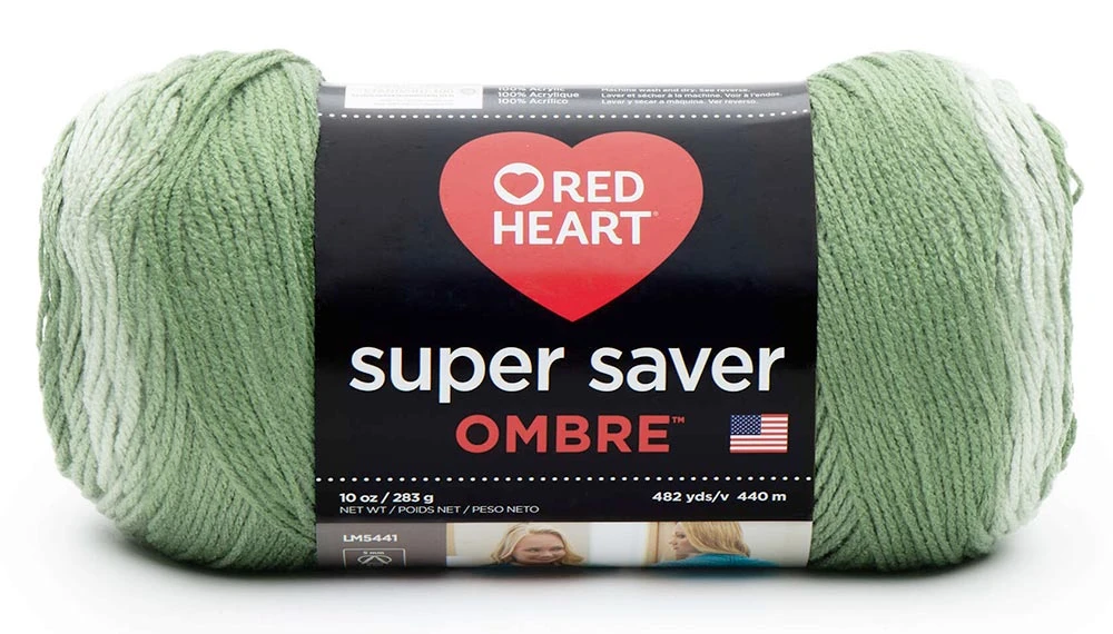 Super Saver yarn now comes in gorgeous ombré prints. Colors move from light to dark and back again so you get that gradient look without changing skeins. The yarn does all the work for you all in one skein. 100% acrylic. 482 yards (440 m) per 10 oz. (283 g) ball.Â