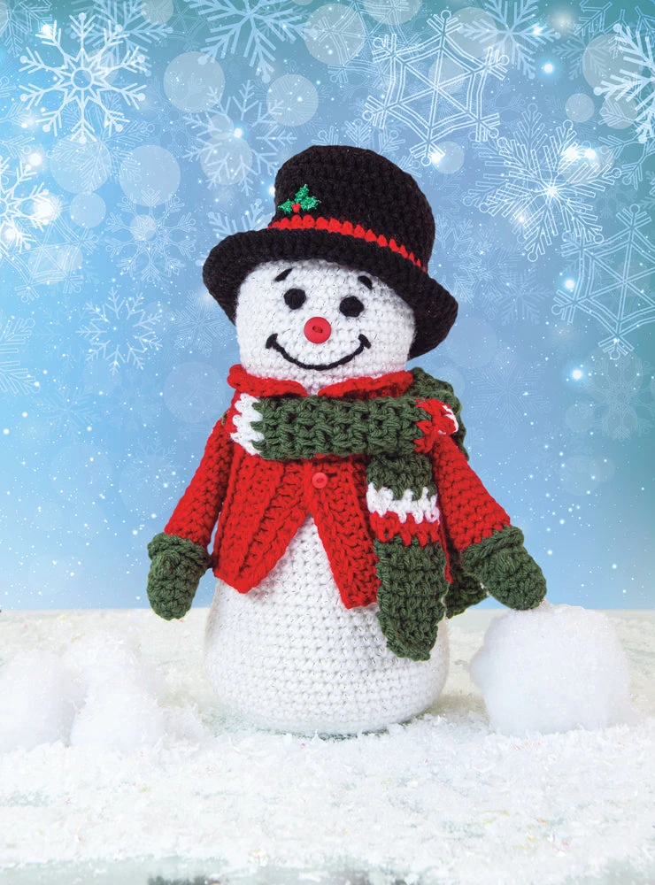 This quaint fellow will melt hearts during the holiday season. Kit includes Starlette and Starlette Sparkle yarns and trims to make as shown. Requires crochet hook I-9 and polyfill. Size 13″ tall.