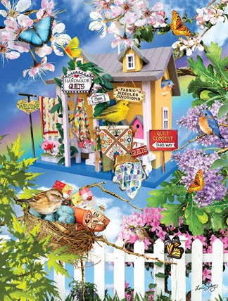 These birds are displaying their talents with their colorful quilts. 500 pieces. Size 18 x 24″.