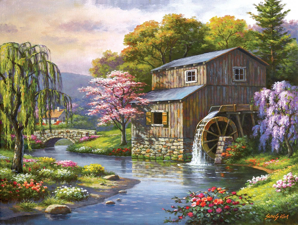 Spring has sprung at the mill. 300 pieces. Size 24 x 18″.