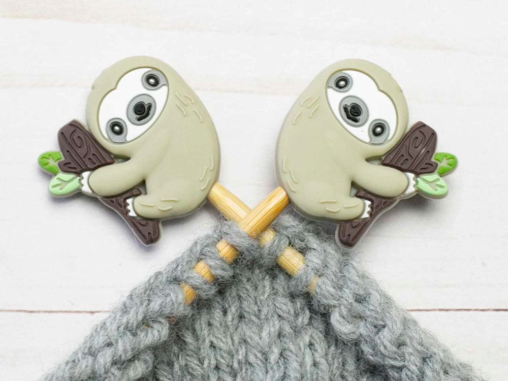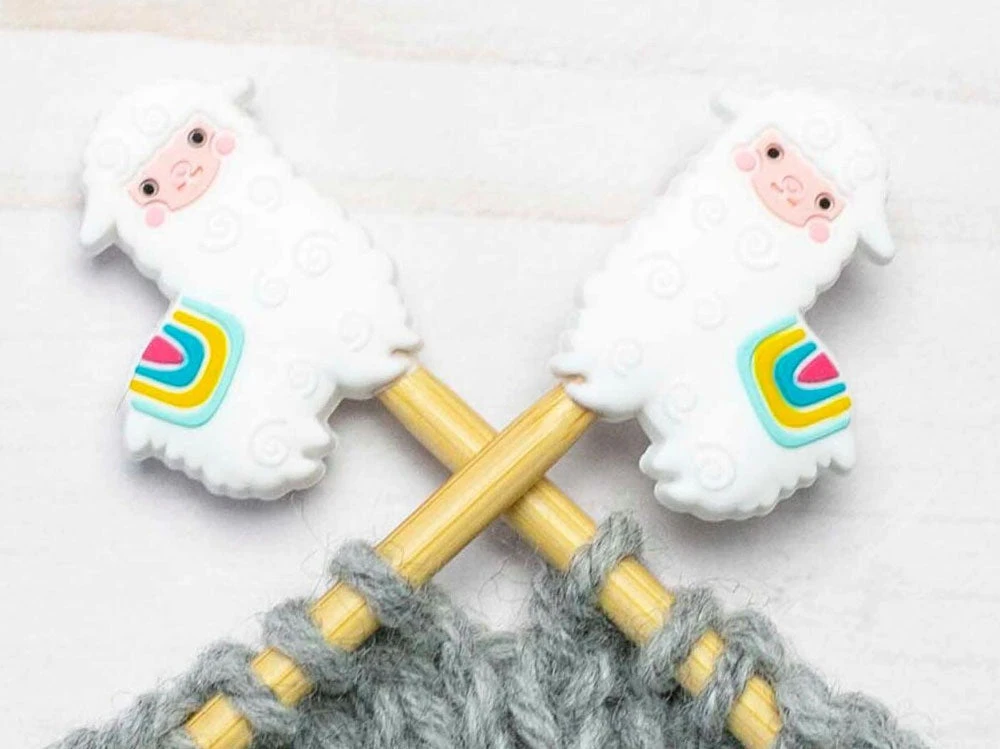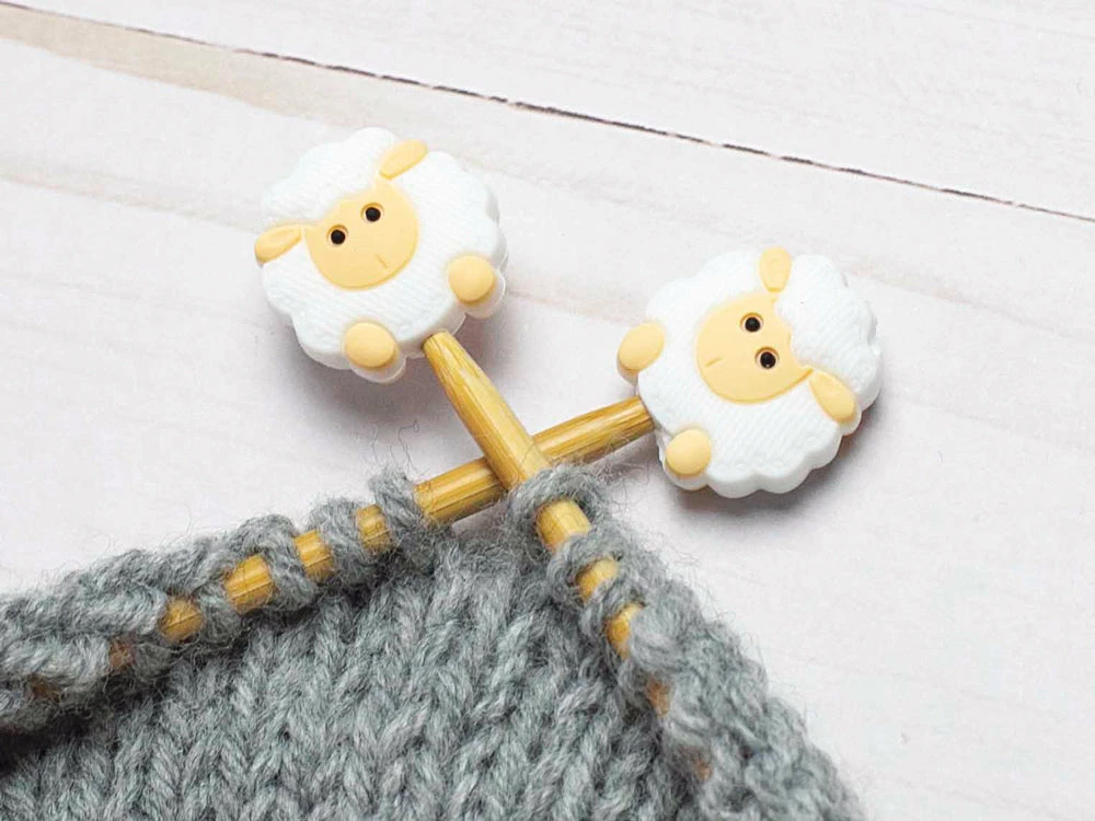 These cute stitch stoppers go on the end of your knitting needles to prevent your stitches from coming undone when you project is set down. Fits needles sizes 2-13. Set of 2.