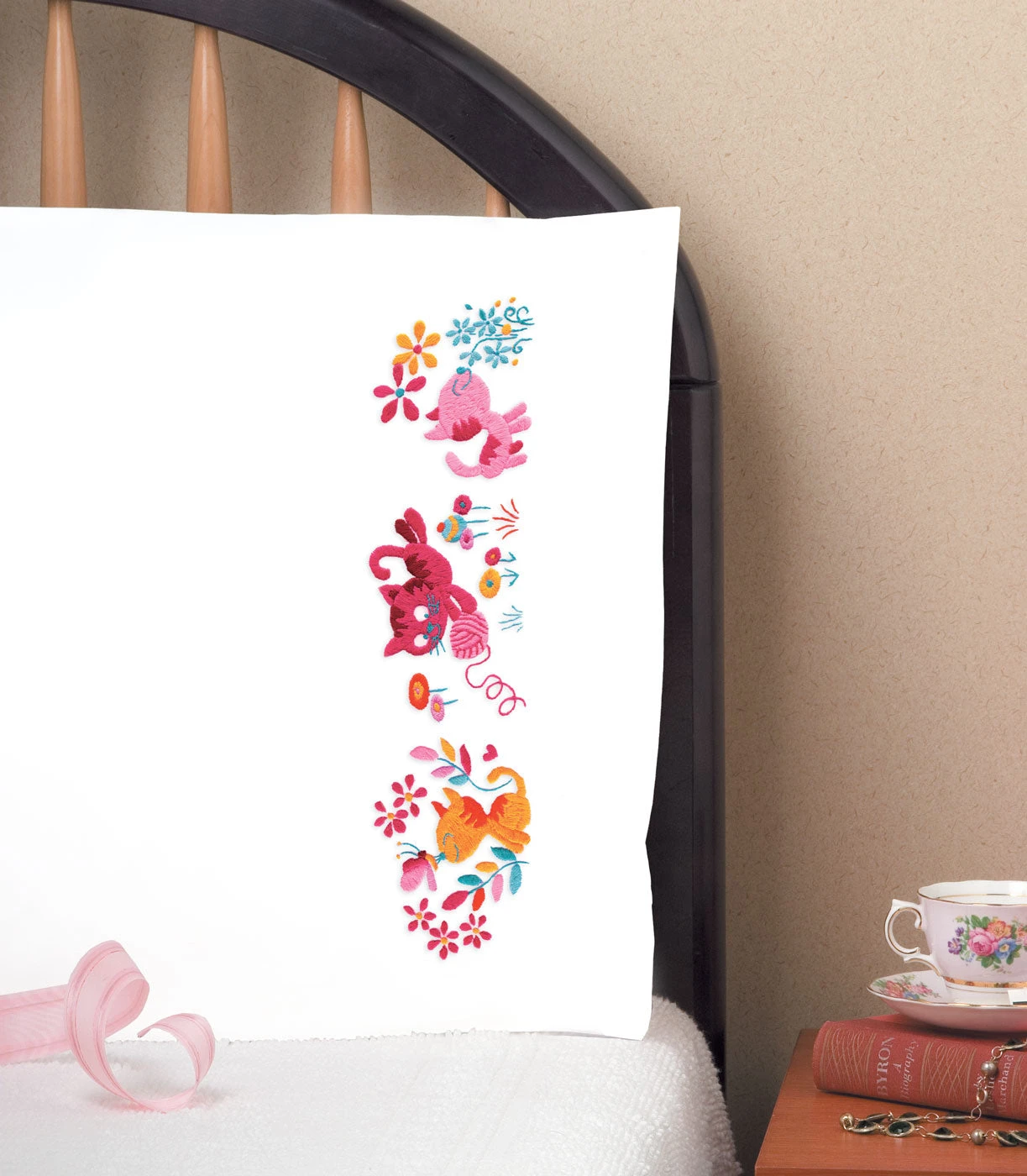Embroider these stamped white pillowcases to compliment your bedroom decor. Thread kit sold separately. Standard size.